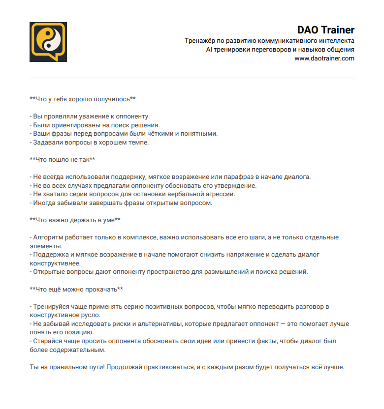 Знакомьтесь: “ДАО ПЕРЕГОВОРОВ” — системный тренажер диалога, который перепрошивает ваши нейронные связи для безупречной коммуникации.